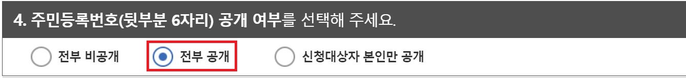 주민등록번호 공개 여부는 전부 공개 선택