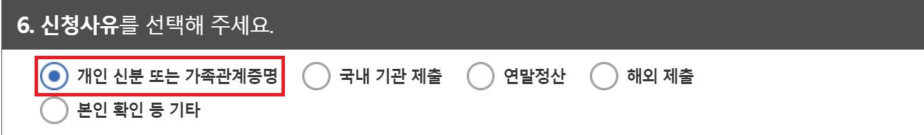 개인 신분 또는 가족관계증명 선택