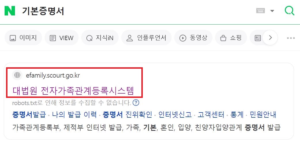 바로 대법원 전자가족관계등록시스템으로 연결됩니다.