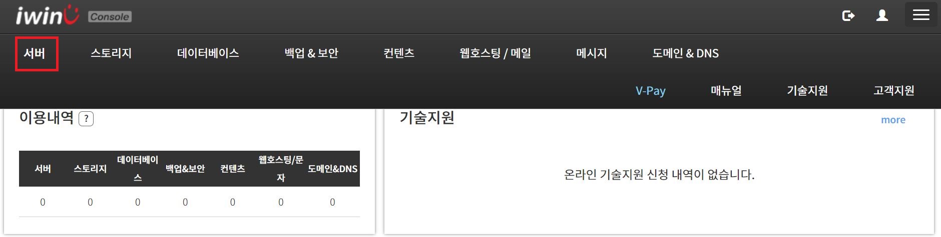 서버 메뉴 클릭