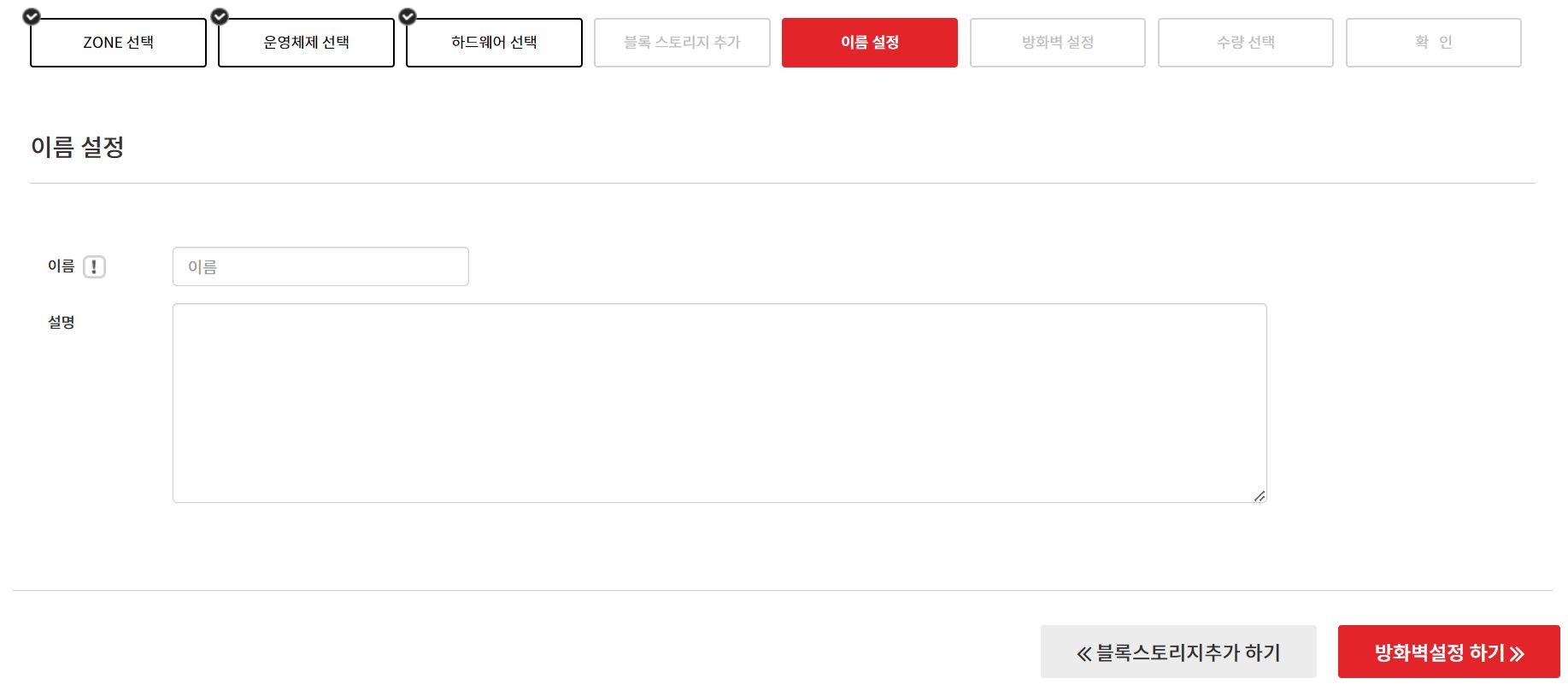 이름설정 하기를 클릭하면 블록 스토리지 사용 안내 문구가 확인됩니다.