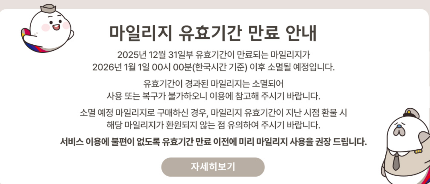 2025년 12월 38,690 마일리 소멸될 예정입니다.
